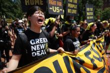 Hundreds of young climate activists rally in Lafayette Square on the north side of the White House to demand that President Joe Biden work to make the Green New Deal into law on June 28, 2021, in Washington, DC.