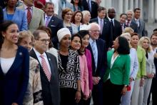 Members of the Congressional Progressive Caucus pose for a group photo in front of the U.S. Capitol Building along with Sen. Bernie Sanders on July 19, 2021, in Washington, D.C. Anna Moneymaker / Getty Images