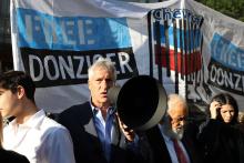 Steven Donziger appears at a rally in front of the Manhattan Court House in New York City on October 1, 2021. Tayfun Coskun / Anadolu Agency via Getty Images