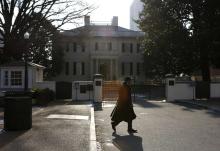 A man walks past the Governor's Mansion on Capitol Square Saturday, February 2, in Richmond, Virginia.