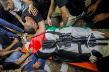 Palestinian mourners attend the funeral one a fighter killed by Israeli forces in Jenin, occupied West Bank, September 28, 2022. (Nasser Ishtayeh/Flash90)