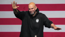John Fetterman waves to supporters at an election night party in Pittsburgh. (AP Photo/Gene J. Puskar)