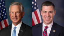 Alabama Republican Sen. Tommy Tuberville and Indiana GOP Congressman Jim Banks. (Official portraits)