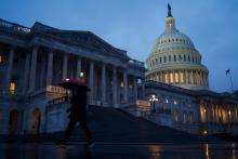 A person walks through the rain near the U.S. Capitol, in Washington, D.C., on December 22, 2022. Getty Images