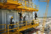 Construction workers on a scaffold Photo by Brett Coomer/Houston Chronicle via Getty Images