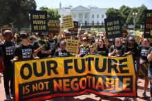 Hundreds of young climate activists rally in Lafayette Square on the north side of the White House to demand that President Joe Biden work to make the Green New Deal into law on June 28, 2021, in Washington, D.C. Chip Somodevilla / Getty Images
